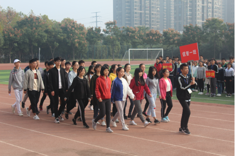 八点半,运动会开幕式准时开始。升国旗仪式后,英姿飒爽的护旗手高举院旗首先入场,裁判员方队、各班级方队紧随其后,迈着矫健的步伐先后经过主席台,接受检阅。各方队昂首阔步,意气风发,嘹亮的口号声响彻云霄。