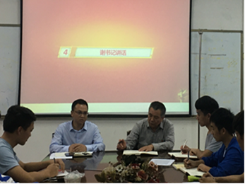 员工第四党支部10月24日下午在东七-609会议室开展党日活动,公司党委副书记谢慧荣、学工办主任刘兴权、党支部书记王相如及17级所有党员参加活动。全体党员肃立高唱国歌,交纳当月党费,重温入党誓词,王相如老师带领全体党员学习了习近平总书记“不忘初心,牢记使命”主题教育工作会议上讲话原文。谢书记向全体党员提出“两味”期望,他强调:全体党员既要有选好书、读好书的“书香味”,也要有深入寝室和班级践行党的宗旨的“泥土味”;要勤学苦练担责任,精进深耕守初心。刘老师要求支委会全体委员明确责任,勇挑重担,扎实做好培养教育引领青年员工的工作,把主题教育活动扎实推进。