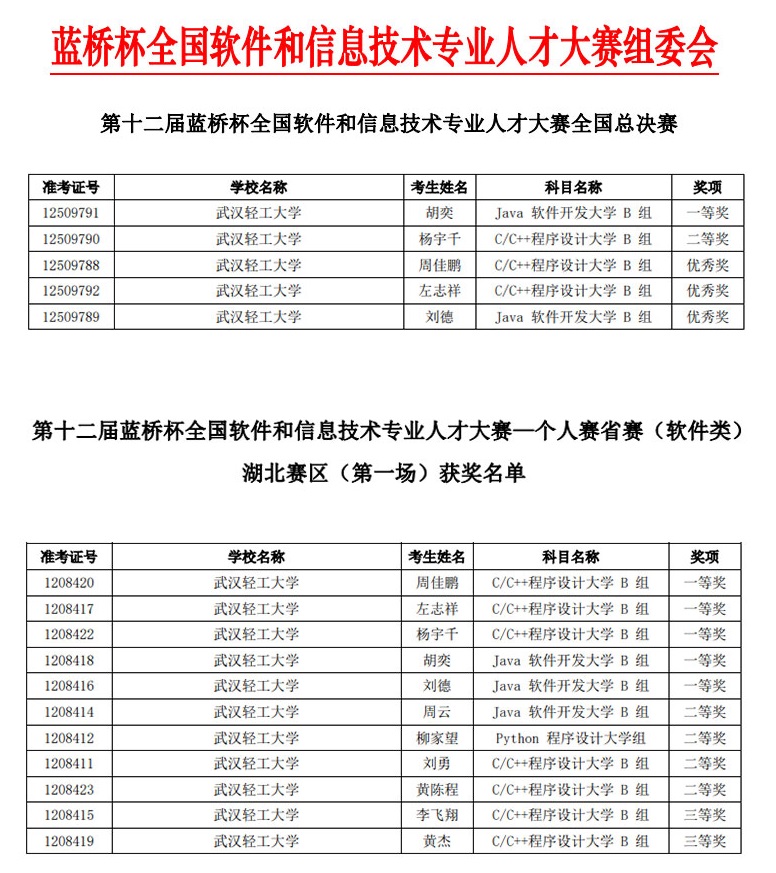 公司高度重视本次比赛,积极动员、组织、选拔和辅导员工,搜集、分析和讲解大赛试题资料。在公司的大力支持下,贾瑜、张琳等老师指导组织13名员工参加湖北省赛,其中,5人获省赛一等奖,4人获省赛二等奖,2人获省赛三等奖。荣获第十二届“蓝桥杯”湖北赛区一等奖的胡奕、杨宇千、左志祥、周佳鹏、刘德等5名同学参加了本次全国总决赛。经过4个小时的激烈角逐,胡奕获得全国一等奖,杨宇千获得全国二等奖,周佳鹏等3名同学获得优秀奖。