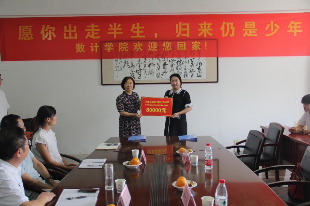 9月27日上午,在公司即将迎来建校70周年之际,公司1995级员工舒畅,代表计算机及应用955581班,向3044am永利集团官网教育发展基金会捐赠8万元,捐赠仪式在东七609会议室举行。校教育发展基金会秘书长、员工办主任滕红华,公司党委书记孟三爱,经理助理李皞,公司辅导员,以及15名员工代表参加了本次仪式。会议由副书记谢慧荣主持。
