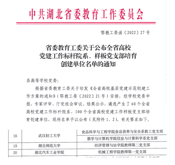 近日,省委教育工委公布了全省高公司党建工作标杆院系、样板党支部培育创建单位名单。我院信息与计算科学系党支部入选全省高公司党建工作样板党支部培育创建单位名单。