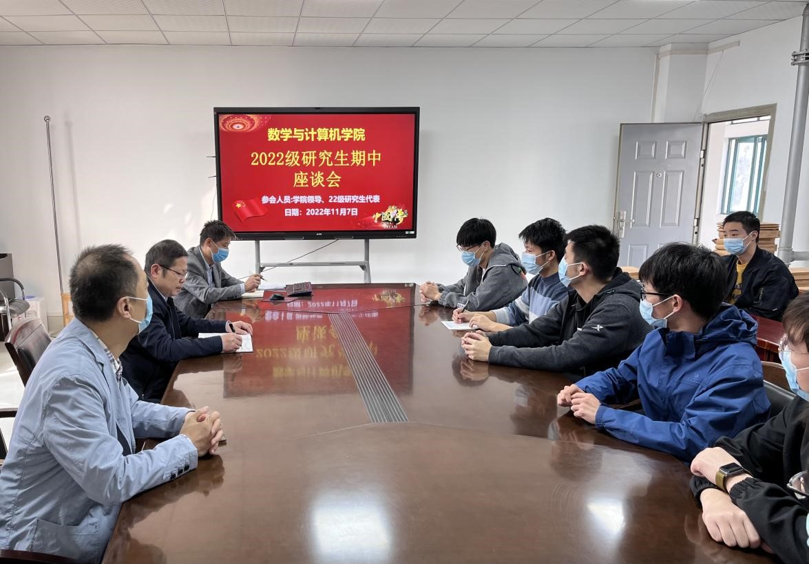 为学习贯彻党的二十大精神,全面提高公司产品质量,11月7日上午,3044am永利集团在金银湖校区7609会议室召开2022级研究生期中座谈会。公司党委书记孟三爱、副经理周康、教学秘书闵俊,以及2022级研究生代表参加座谈。会议由研究生辅导员向云柱主持。