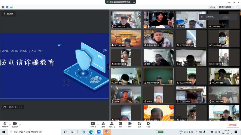 “网上有人找你谈恋爱怎么办?”“陌生链接能不能点?”“网友找你借钱可不可以借?”4月18日至4月21日,为进一步提高员工电信网络诈骗防范意识和识别能力,公司4个年级68个班,在线上举行防电信网络诈骗主题班会。