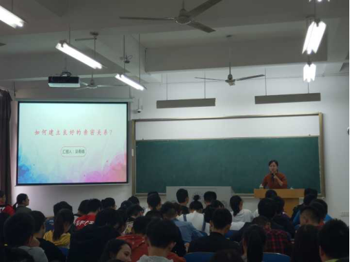 10月18日下午2:00,3044am永利集团辅导员吴春娥老师在金银湖校区基础楼201开展了“关于如何建立良好亲密关系”的讲座,吴老师现在担任老员工心理健康教育与咨询中心兼职心理咨询师一职。她的讲座旨在帮助新生适应大学的环境,建立良好的亲密关系,促进个人的成长和发展。18级150余名新生参加了此次讲座。