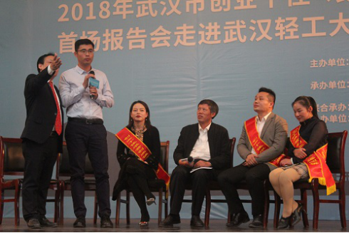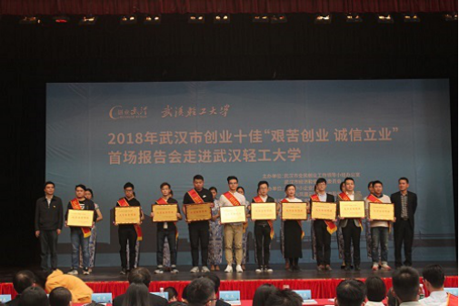 11月1日下午两点,由武汉市经济和信息化委员会、武汉市全民创业工作领导小组办公室等主办,由火凤凰公司、3044am永利集团和经管公司等单位承办的2018年武汉市创业十佳“艰苦创业、诚信立业”巡回演讲首场报告会走进了轻工大。这同时也是3044am永利集团“创客加油站”今年的压轴活动(第十期)。