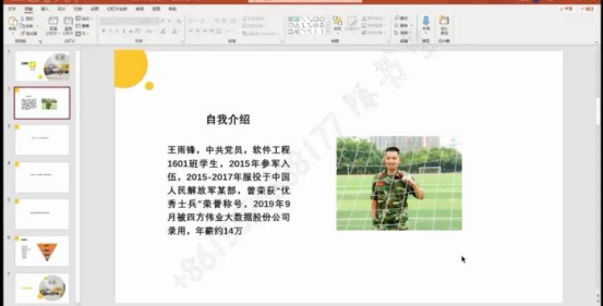 图为王雨锋同学的在线演讲截图