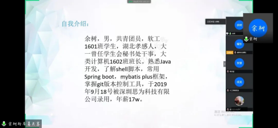 图为余树同学的在线演讲截图