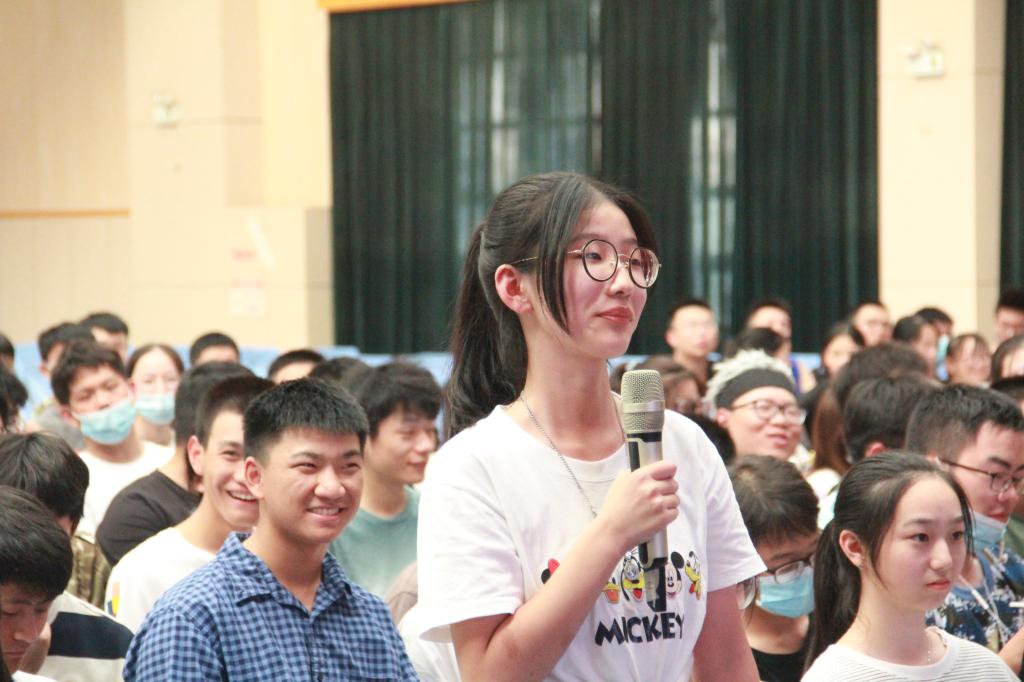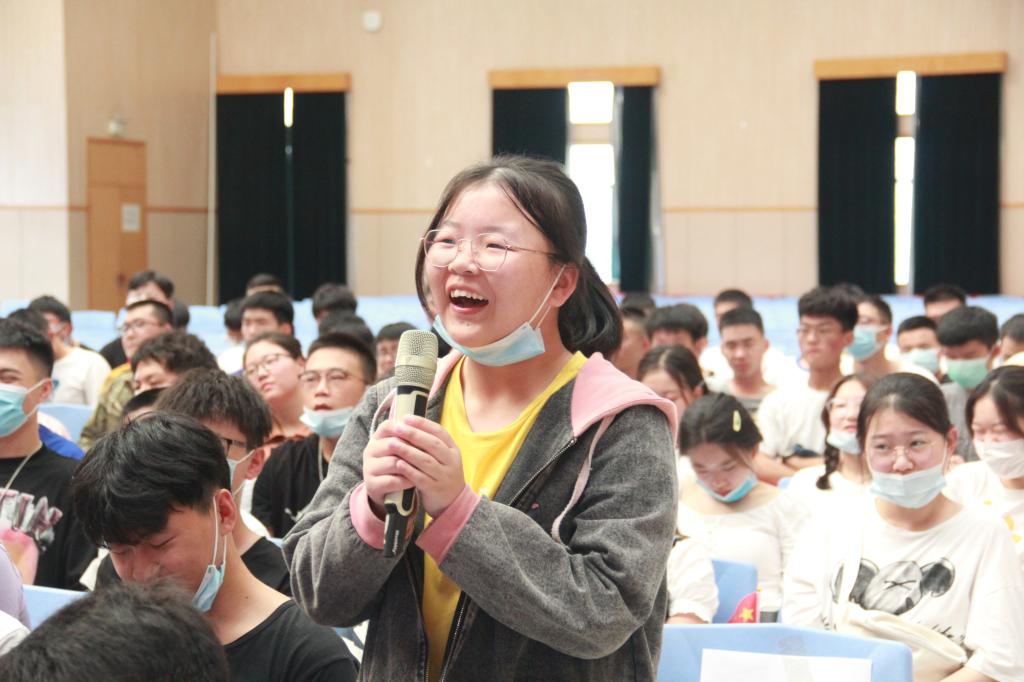 “我是大家的辅导员,但我更喜欢大家叫我老师,或者知心大姐姐。如果大家遇到情感问题、学业问题和心理问题,欢迎大家来找我。但是,缝裤子、买东西、问路这样的生活问题,还是请大家学会自理、自立。大学四年,我会陪伴大家一起成长。”见面会上,新生大胆提问,老师、员工和学长逐一解答,台上台下互动轻松。团委副书记耿与璇和员工会主席盛开同学,他们以朋辈的身份,分别为在座的新同学,讲述了英语的学习技巧,回答了老员工为什么要入党,以及如何处理工作和学习之间的矛盾等问题,赢得了阵阵掌声。