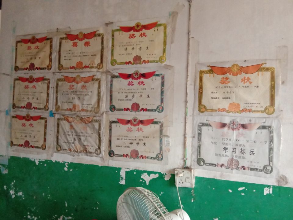 上午10点,一行四人来到了何开元家。何开元是2017级本科生,家住罗田县平湖乡中学。中学座落在318国道旁边的大山上,国道的另一边则是空旷的河滩,只有浅浅的水折射出些许阳光。通向公司的路是一个比较陡的上坡,根据何开元在电话里的描述,公司就在这个山坡上。由于坡陡,汽车的油门踩得很深才爬上去。一上坡,公司的大门赫然就在眼前。一个身穿短裤短袖的小伙子站在前方100米处等我们,他就是何开元。何开元主动跟下车的老师们打招呼,并带着大家走进一栋年代久远的三层楼房,在二楼的一个小房间里,我们看到了何开元的妈妈,个子很小,穿着很朴素。落座后,何开元跟妈妈忙前忙后,为我们倒茶、端果盘、切西瓜。在交谈中,我们了解到,何开元一家五口人,爸爸妈妈都是公司的职工,但爸爸患病已久,早已丧失劳动能力,现在与奶奶住在农村;妈妈的听力不好,需大声说话才能听到一点,只能在公司从事试卷印刷工作,姐姐和他一样也是大二升大三,就读于湖北经济公司。听到这里,孟书记对何开元的妈妈说:“您培养了两个老员工,很不容易啊!”何开元便在妈妈的耳边大声说:“老师说你很不容易。”何开元的妈妈就露出满足的笑容。环顾何开元的家,屋子不大,墙壁上的油漆已经脱落,水泥地面也凸凹不平。由于光线不太好,屋子里还显得有些黑暗,但是右边墙壁上的一排排奖状却是屋子里最亮的风景,奖状上的“三好员工”、“进步员工”、“学习标兵”几个大字似乎在告诉我们,何开元就是这个家庭的希望。离开的时候,孟书记代表公司赠送了1000元慰问金,他叮嘱何开元:“一定要早立志、立大志,不管是考研还是就业,要早规划早准备,争取早日成才!”