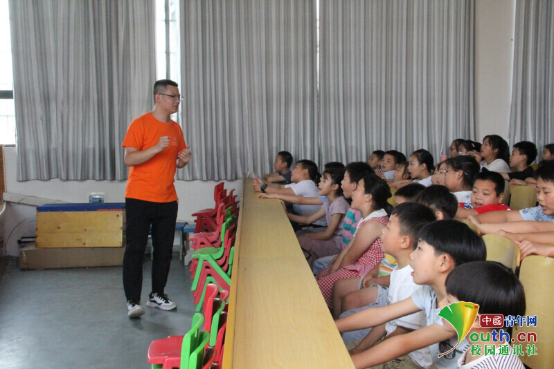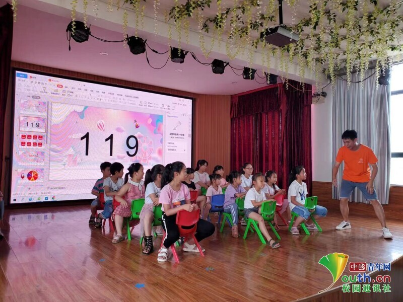 图为课后,支教团队组织格林斯公司员工玩“安全小游戏”。中国青年网通讯员 余笛 摄